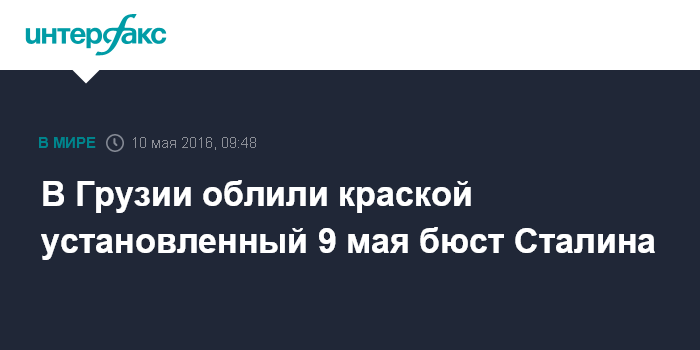 "Вчера, в честь дня Победы мы установили бюст Сталина на горе вблизи села, но неизвестные ночью облили бюст краской. Это, кстати, не первый подобный случай в нашем селе", - заявил во вторник журналистам местный житель Мамия Лотишвили.
