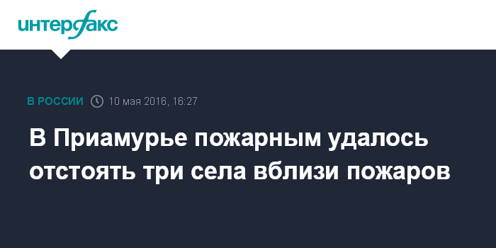 Москва. 10 мая. INTERFAX.RU - Три села в Мазановском районе Амурской области и дачный поселок в Благовещенском районе оказались в опасной близости от природных пожаров, однако оперативным службам удалось остановить распространение огня.
