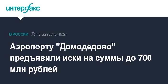 Аэропорту "Домодедово" предъявили иски на суммы до 700 млн рублей