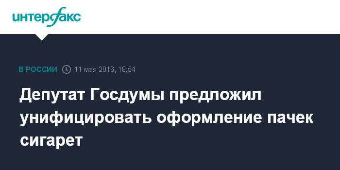 Москва. 11 мая. INTERFAX.RU - Депутат Госдумы Дмитрий Носов предлагает ввести единый стандарт оформления пачек сигарет.