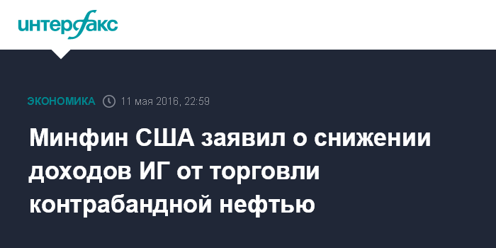 Москва. 11 мая. INTERFAX.RU - Авиаудары, падение цен на нефть и усилия по противодействию контрабанде привели к тому, что доходы "Исламского государства" (ИГ, запрещена в России) снизились наполовину и достигли примерно $250 миллионов в год, сообщил в среду представитель министерства финансов США Дэниэл Глейзер.