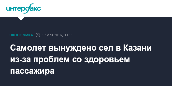 Москва. 12 мая. INTERFAX.RU - В международном аэропорту Казани в четверг утром в связи с плохим самочувствием пассажира совершил вынужденную посадку самолет, летевший из Кемерово в Москву, сообщает пресс-служба аэропорта.