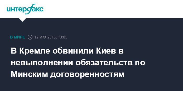 В Кремле обвинили Киев в невыполнении обязательств по Минским договоренностям