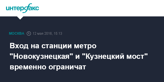 Москва. 12 мая. INTERFAX.RU - Станции столичного метро "Новокузнецкая" и "Кузнецкий мост" до начала июля в будни будут закрыты на вход в утренние часы, сообщает твиттер метрополитена.