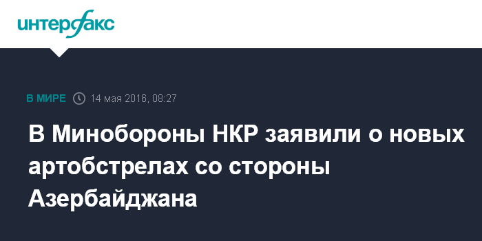 Москва. 14 мая. INTERFAX.RU - В ночь на субботу на линии соприкосновения вооруженных сил непризнанной Нагорно-Карабахской республики (НКР) и Азербайджана сохранялась напряженность, создавшаяся накануне после полудня, сообщили "Интерфаксу" в пресс-службе Минобороны НКР.