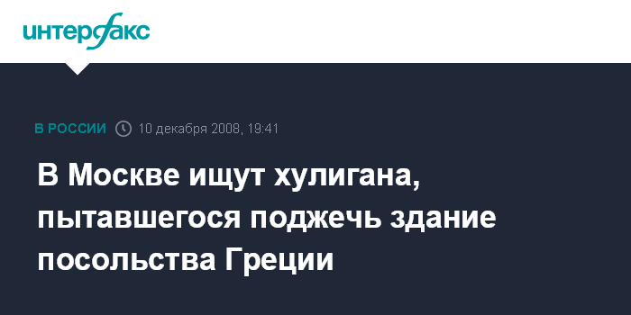 В Москве ищут хулигана, пытавшегося поджечь здание посольства Греции