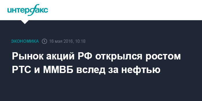 Москва. 16 мая. INTERFAX.RU - Рынок акций РФ открылся в понедельник ростом цен blue chips на фоне подорожавшей нефти и улучшения внешней фондовой конъюнктуры; индексы РТС и ММВБ за минуту торгов прибавили 0,1-0,4%.