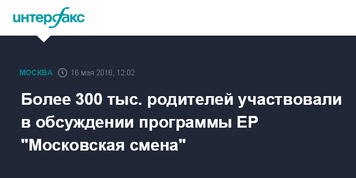 Более 300 тыс. родителей участвовали в обсуждении программы ЕР "Московская смена"