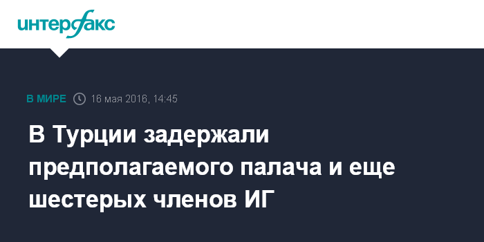 Москва. 16 мая. INTERFAX.RU - Сотрудники служб безопасности задержали в городе Элязыг на востоке Турции семь человек по подозрению в связях с террористической группировкой "Исламское государство" (ИГ, запрещена в России - ИФ), сообщил в понедельник сайт ливанского изданияThe Daily Star.