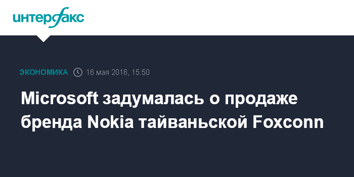 Москва. 16 мая. INTERFAX.RU - Microsoft Corp. может продать бренд Nokia тайваньской компании Foxconn, сообщает издание Phonearena со ссылкой на информированный источник.