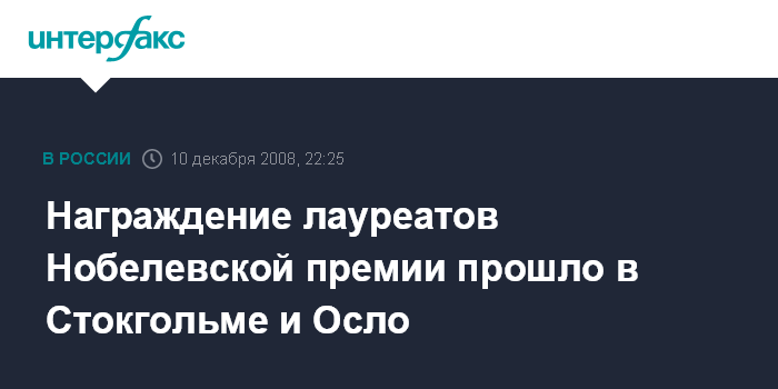 Награждение лауреатов Нобелевской премии прошло в Стокгольме и Осло