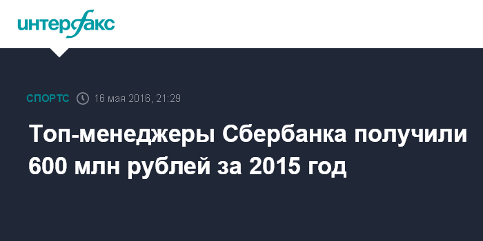 Топ-менеджеры Сбербанка получили 600 млн рублей за 2015 год