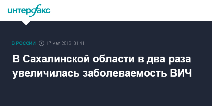 "Для Сахалинской области проблема распространения ВИЧ очень актуальна - только за 2015 год уровень заболеваемости вырос по сравнению с прошлым годом в 1,7 раза (с 26,9 новых случаев до 46,3 случаев на 100 тыс. человек населения). Всего в регионе с 1993 года (начала регистрации ВИЧ-инфекции) выявлен 1 тыс. 051 случай заболевания", - говорится в сообщении.