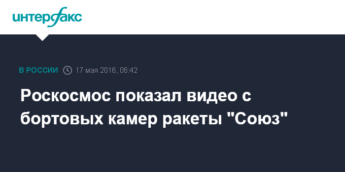 Москва. 17 мая. INTERFAX.RU - Роскосмос выложил в сеть видео, записанное во время пуска бортовыми камерами ракеты "Союз-2.1а" стартовавшей с космодрома "Восточный" 28 апреля.