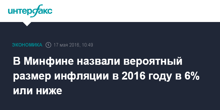 В Минфине назвали вероятный размер инфляции в 2016 году в 6% или ниже