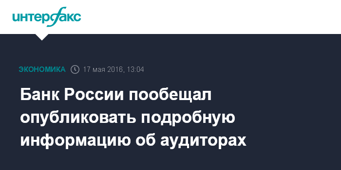 Банк России пообещал опубликовать подробную информацию об аудиторах