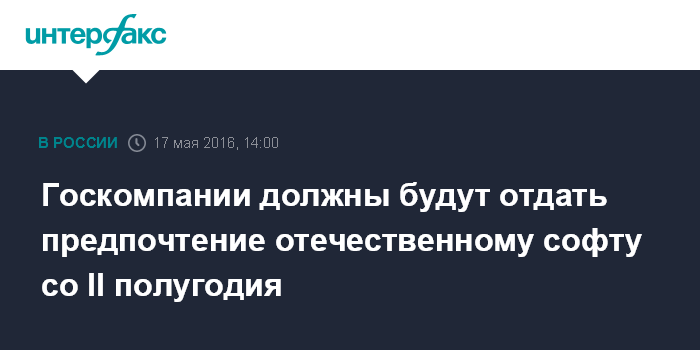 "Во исполнение указания президента РФ Владимира Путина по итогам совещания с членами правительства подготовлен проект директив крупнейшим компаниям с госучастием о преимущественной закупке программного обеспечения (ПО) из реестра (ведется Минкомсвязи РФ - ИФ) и также использования ПО при создании корпоративных информационных систем", - сказал он.
