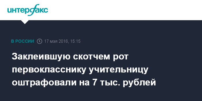 Заклеившую скотчем рот первокласснику учительницу оштрафовали на 7 тыс. рублей
