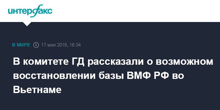 "Из плюсов - это, конечно, Индийский океан и выход на тихоокеанские просторы", - сказал он, добавив, что "мы (Россия -ИФ) поторопились, что ушли оттуда (из Вьетнама - ИФ)".