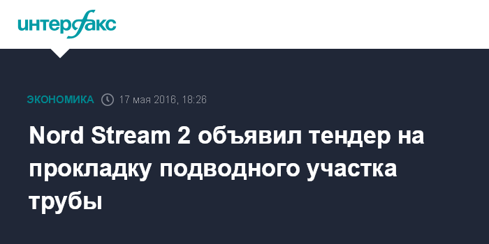 Москва. 17 мая. INTERFAX.RU - Оператор строительства "Северного потока 2" компания Nord Stream 2 AG объявила тендер на прокладку глубоководного участка газопровода, за исключением прибрежных участков, сообщил "Газпром".