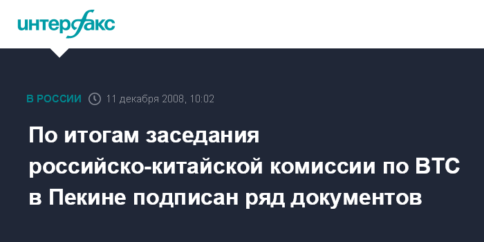 По итогам заседания российско-китайской комиссии по ВТС в Пекине подписан ряд документов
