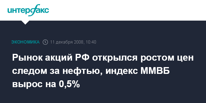 Москва. 11 декабря. INTERFAX.RU - Рынок акций РФ открылся в четверг ростом цен большинства blue chips следом за подорожавшей нефтью и подъемом мировых фондовых площадок, индекс ММВБ в первую минуту торгов вырос на 0,5%.