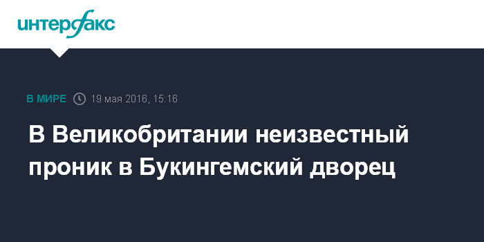 Москва. 19 мая. INTERFAX.RU - Безоружный 41-летний мужчина арестован в саду Букингемского дворца за незаконное проникновение на его территорию, сообщает в четверг британская газета The Daily Mail.