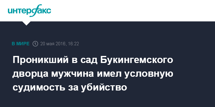 Москва. 20 мая. INTERFAX.RU - Денис Хеннесси, который был арестован в саду Букингемского дворца за незаконное проникновение на его территорию, оказался условно осужденным убийцей, сообщило в пятницу агентство Associated Press.