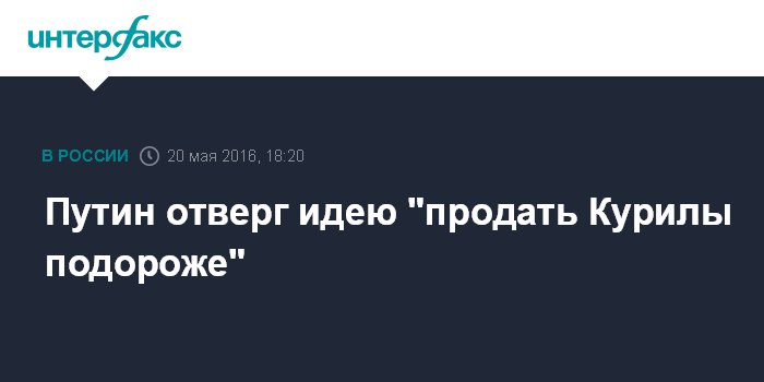 "Что касается наших отношений с Японией и вашего тезиса, чтобы подороже что-то продать, мы ничего не продаем. Мы готовы купить многое, но ничего не продаем", - сказал Путин на пресс-конференции по итогам саммита Россия - АСЕАН, отвечая с улыбкой на вопрос журналиста о том, не хочет ли Россия поторговаться с Японией, чтобы подороже продать Курильские острова.