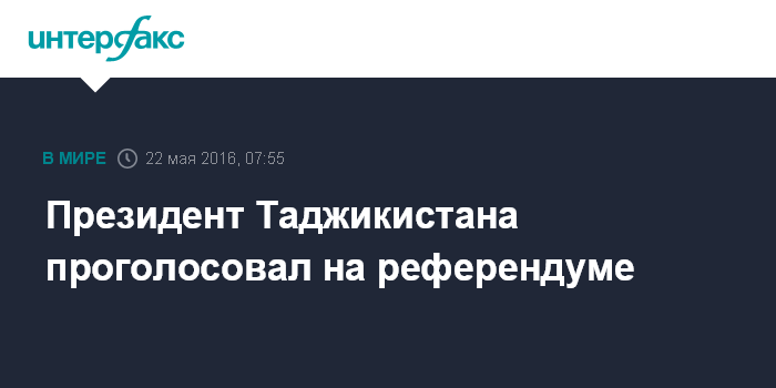 Москва. 22 мая. INTERFAX.RU - Президент Таджикистана Эмомали Рахмон утром в воскресенье на избирательном участке №15 района Исмоили Сомони города Душанбе проголосовал на референдуме о внесении поправок в Конституцию республики.