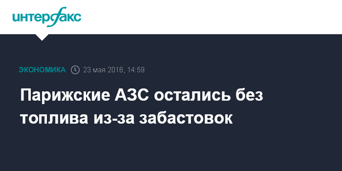 Москва. 23 мая. INTERFAX.RU - Запасы автомобильного топлива на парижских автозаправочных станциях резко сократились, в понедельник некоторые АЗС были вынуждены приостановить обслуживание клиентов из-за нехватки топлива, сообщают местные СМИ.