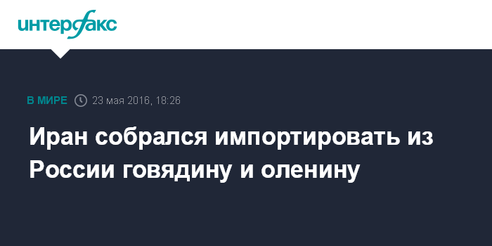 Москва. 23 мая. INTERFAX.RU - Иран собирается импортировать из России говядину и оленину.