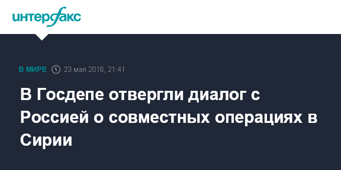 Москва. 23 мая. INTERFAX.RU - Вашингтон не обсуждал с Москвой возможности проведения совместных операций в Сирии, сообщил в понедельник на брифинге представитель государственного департамента США Марк Тонер.