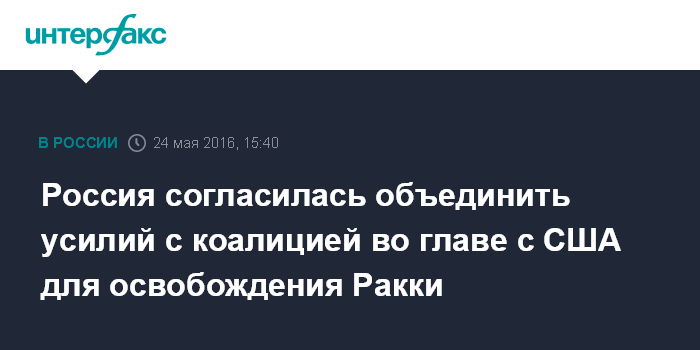Россия согласилась объединить усилий с коалицией во главе с США для освобождения Ракки