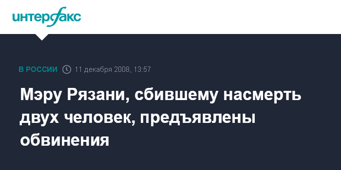Мэру Рязани, сбившему насмерть двух человек, предъявлены обвинения