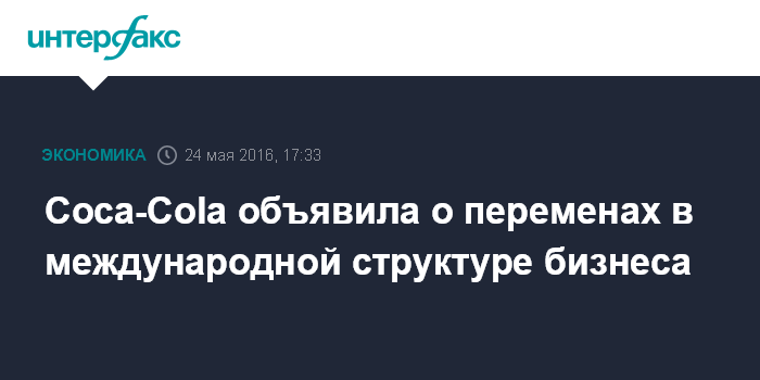 Москва. 24 мая. INTERFAX.RU - Coca-Cola Co., крупнейший в мире производитель безалкогольных напитков, объявила о планах изменения организации своего международного бизнеса с первого августа.