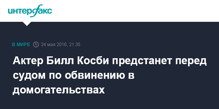 Москва. 24 мая. INTERFAX.RU - Американский актер Билл Косби был вызван во вторник на слушание, где его известили о том, что он предстанет перед судом по обвинению в сексуальных домогательствах, сообщает The Associated Press.