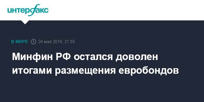 Москва. 24 мая. INTERFAX.RU - Минфин РФ доволен итогами своего возвращения на внешний рынок заимствований.