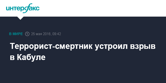 Москва. 25 мая. INTERFAX.RU - Не менее 10 человек погибли в результате атаки террориста-смертника в Кабуле, сообщает в среду агентство AP со ссылкой на представителя МВД страны.