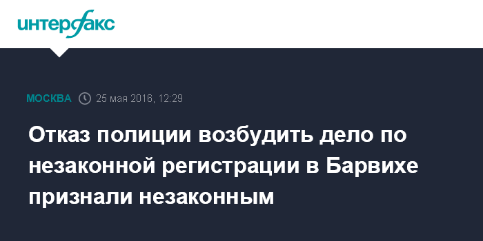 Отказ полиции возбудить дело по незаконной регистрации в Барвихе признали незаконным