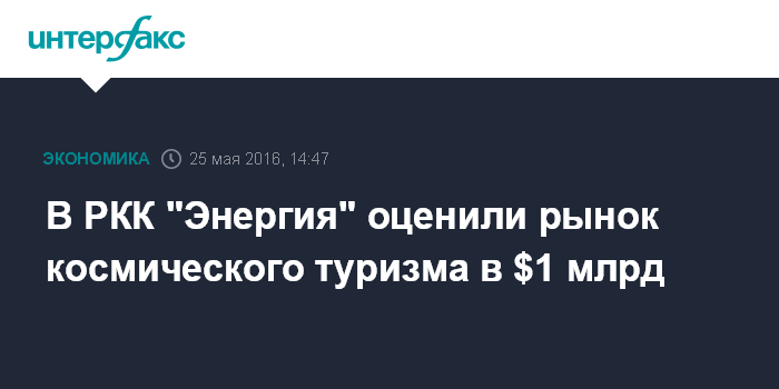 Москва. 25 мая. INTERFAX.RU - Рынок космического туризма оценивается в один миллиард долларов, сообщил в среду на научной конференции вице-президент Ракетно-космической корпорации "Энергия" Александр Деречин.