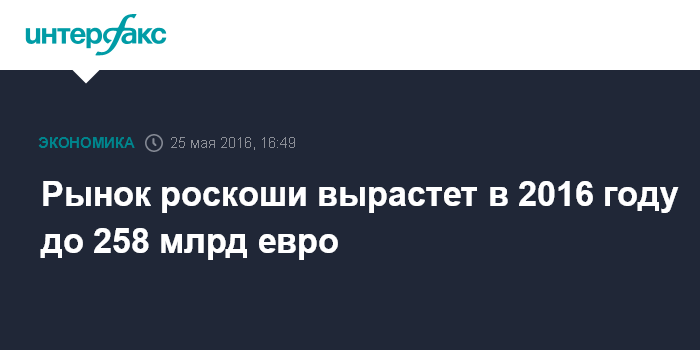 Рынок роскоши вырастет в 2016 году до 258 млрд евро