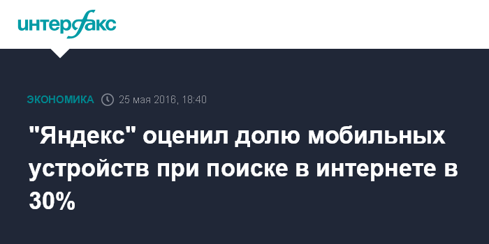 Москва. 25 мая. INTERFAX.RU - Доля мобильных устройств при поиске в интернете (учитывались переходы со всех основных интернет-поисковиков в рунете - ИФ) составляет около 30%, говорится в исследовании "Яндекса".