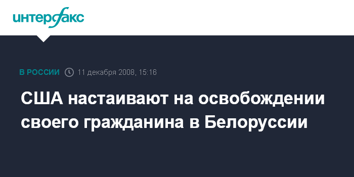 Москва. 11 декабря. INTERFAX.RU - США призывают власти Белоруссии освободить американского гражданина Эммануила Зельцера из соображений гуманности.