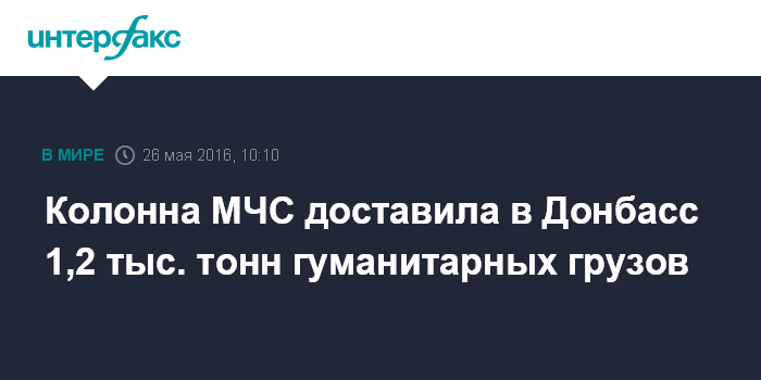 Москва. 26 мая. INTERFAX.RU - Автоколонна МЧС России доставила в Донецк и Луганск очередную партию гуманитарной помощи, сообщили "Интерфаксу" в пресс-службе министерства.