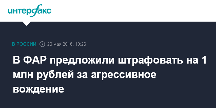 В ФАР предложили штрафовать на 1 млн рублей за агрессивное вождение