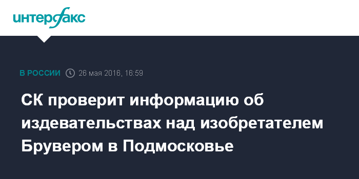 СК проверит информацию об издевательствах над изобретателем Брувером в Подмосковье
