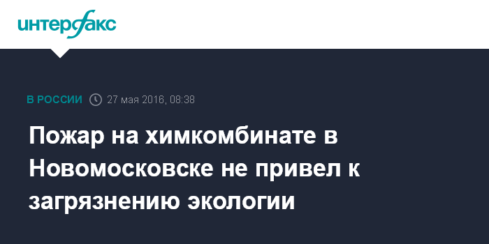 Москва. 27 мая. INTERFAX.RU - В результате пожара в цеху химкомбината "Азот" в Новомосковске (Тульская область) выброса вредных веществ не произошло, сообщил "Интерфаксу" в пятницу руководитель пресс-службы ГУ МЧС по региону Максим Пряхин.