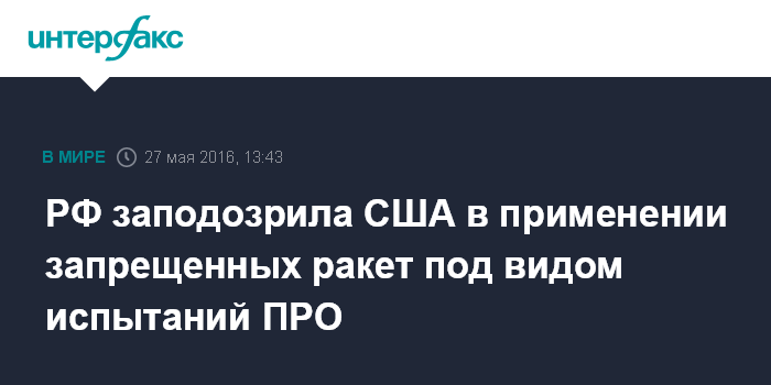 "Есть основания полагать, что под видом испытаний средств ПРО США отрабатываются вопросы применения запрещенных договором (РСМД - ИФ) ракет средней и меньшей дальности", - отметил он.