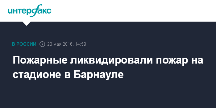Москва. 28 мая. INTERFAX.RU - Пожарные потушили крупное возгорание на стадионе "Коммунальщик" в Барнауле (Алтайский край), сообщает в субботу региональное управление МЧС РФ.
